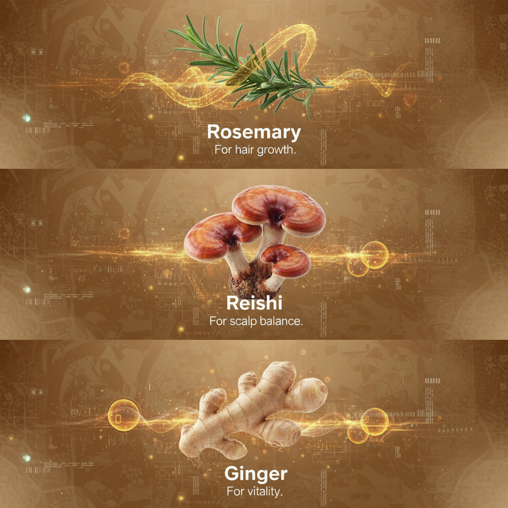 Enriched with Biota orientalis and Vitex trifolia extracts to reduce hair loss, activate follicles, and promote stronger, thicker hair growth.